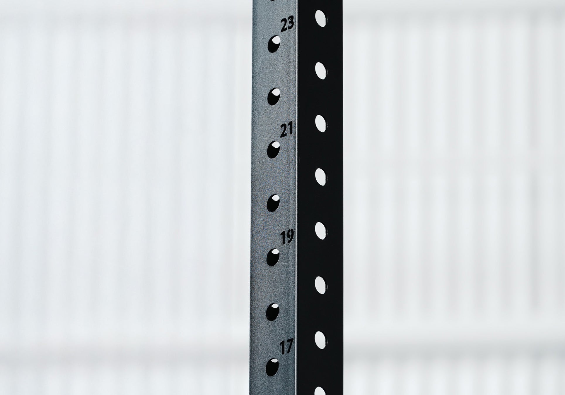 堅牢な構造と安全性を第一に考慮した設計。スチール性でスムーズに差し込め、高重量を支える安全ピンが各パーツごとに設けてられており、一人でも安心してトレーニングに集中できます。本体フレームに番号が刻印されており、自分のベストポジションが一目でわかります。