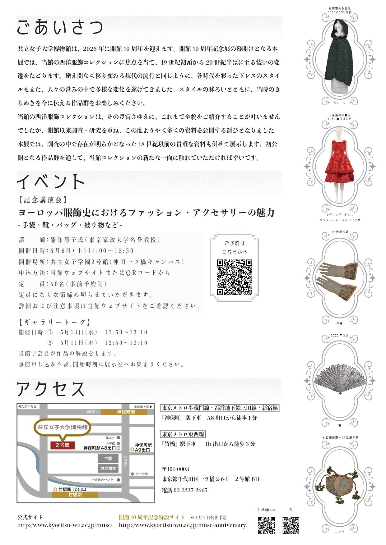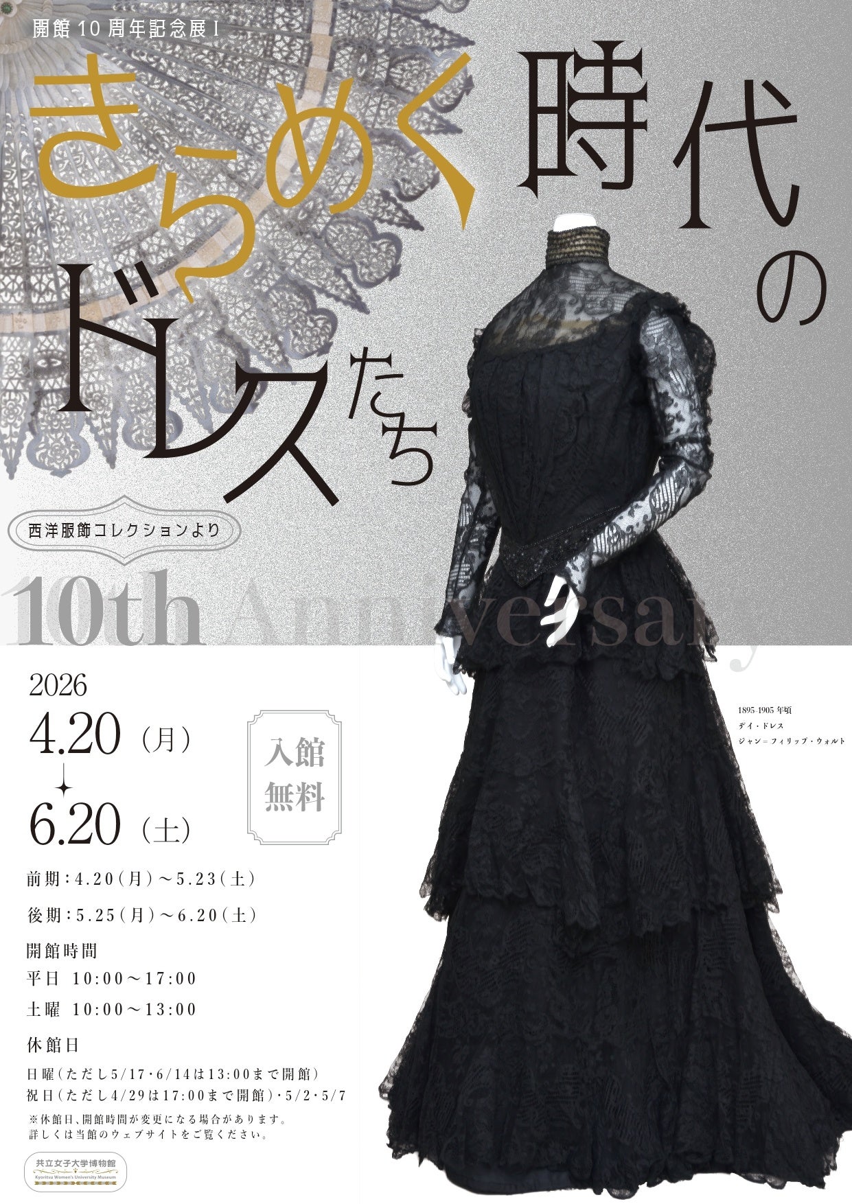▼開館10周年記念展Ⅰ「きらめく時代のドレスたち―西洋服飾コレクションより―」ちらし