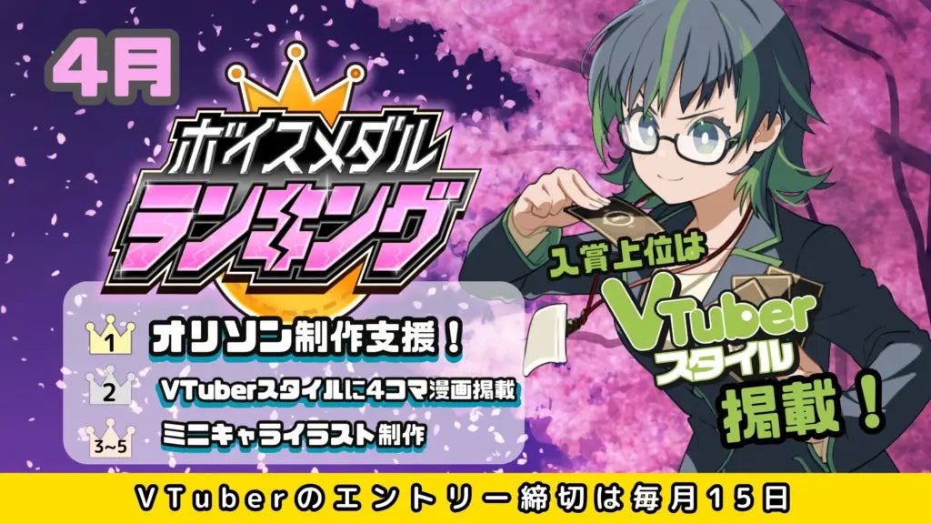 CrossVision、V-tampにおける4月度「ボイスメダル」販売数トップ5のVTuberランキングを発表