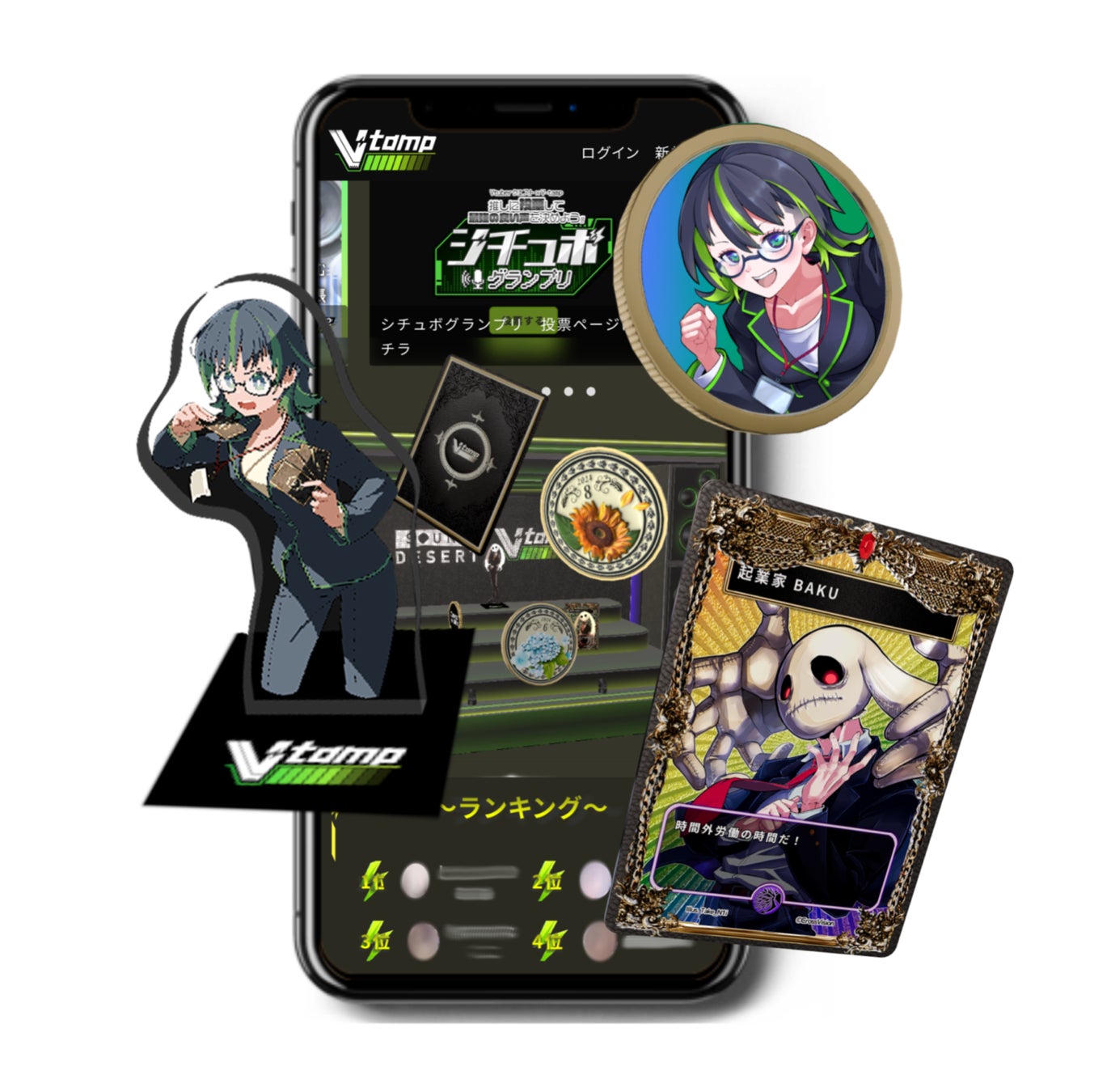 V-tampはクロスビジョンが運営する推し活グッズ販売サービスです。デジタルコンテンツを販売することで在庫、物流、管理コストをかけないグッズ展開を支援でき、VTuberの収益化課題の解決を目指します。