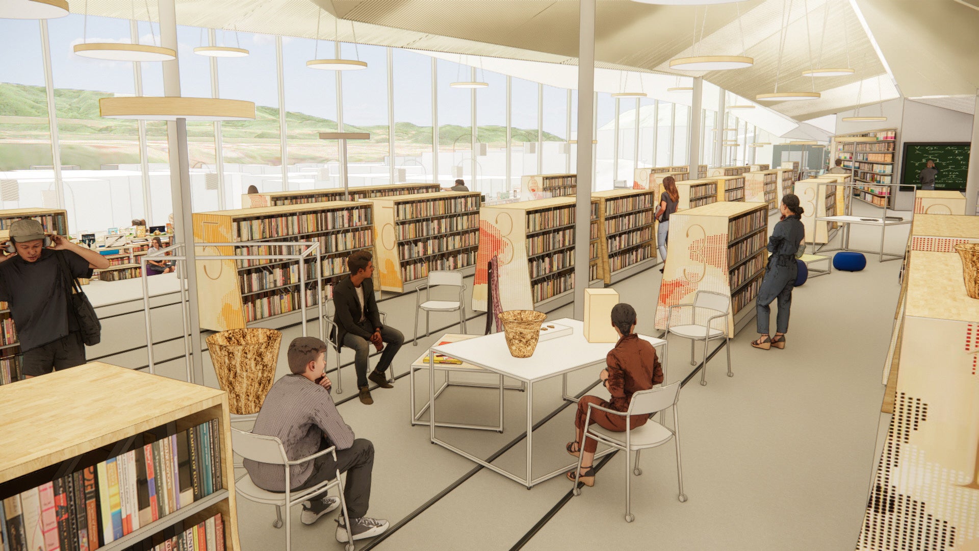 活動に応じた特性をもった9つの「アンカー」と呼ばれる空間と、動く書架や展示台の「フロート」があり、さまざまな空間で新たな気づきや関心、利用者同士の交流を生み出します。