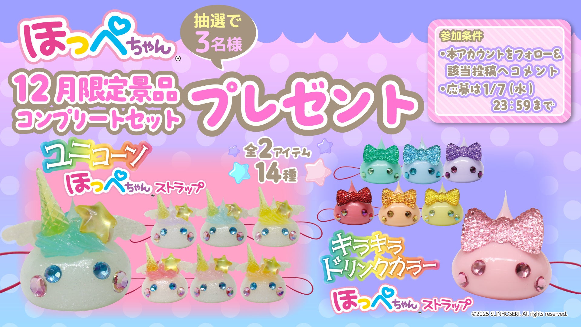 X(旧Twitter)「GiGOグループのお店 公式アカウント(https://x.com/GENDA_GiGO)」またはInstagram「株式会社GENDA GiGO Entertainment 公式アカウント(https://www.instagram.com/genda_gigo/)」をフォローし、Xでは該当の投稿をリポストしていただいた方の中から、Instagramでは該当の投稿にコメントいただいた方の中から、それぞれ抽選で3名様に「12月限定景品コンプリートセット(全13種)」をプレゼントいたします。