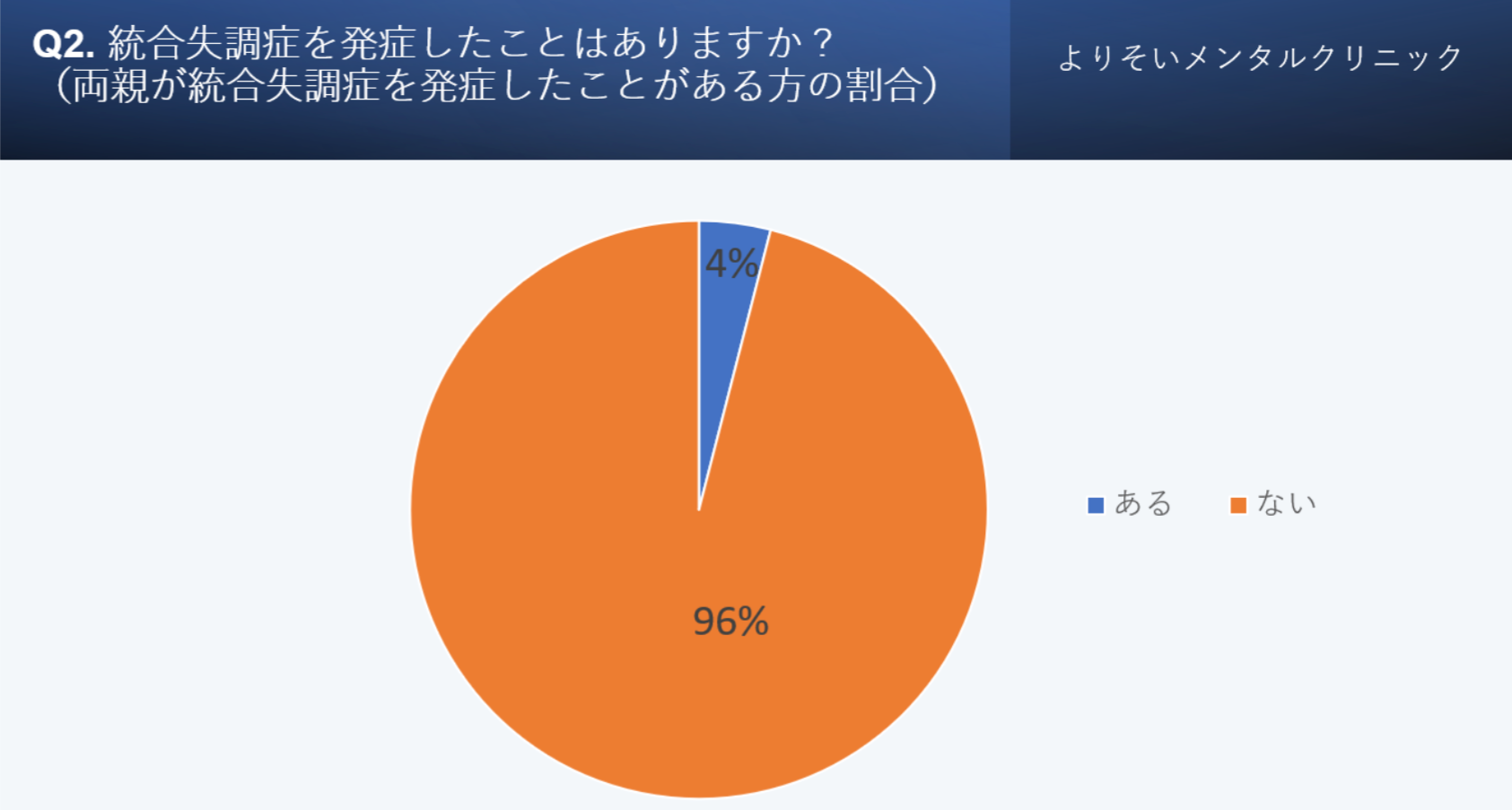 その結果、約4%の方が統合失調症を発症したことがあると分かりました。約8倍の方が統合失調症を発症していることになります。
