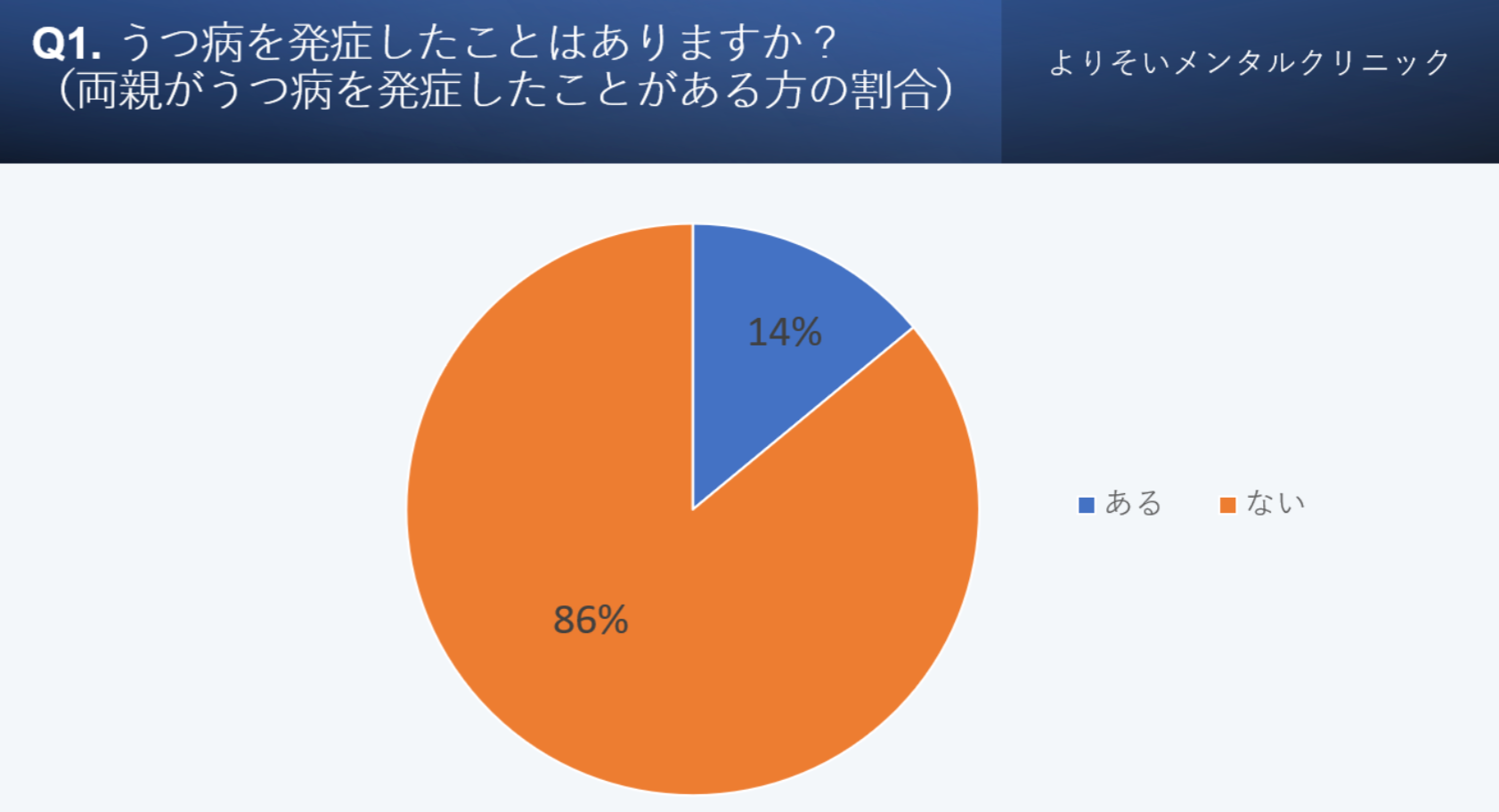 その結果、約14%の方がうつ病を発症したことがあると分かりました。約2.3倍の方がうつ病を発症していることになります。