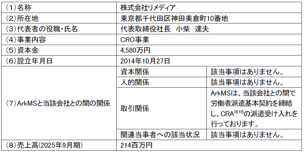 2.相手先(リメディア)の概要(2025年9月30日現在)