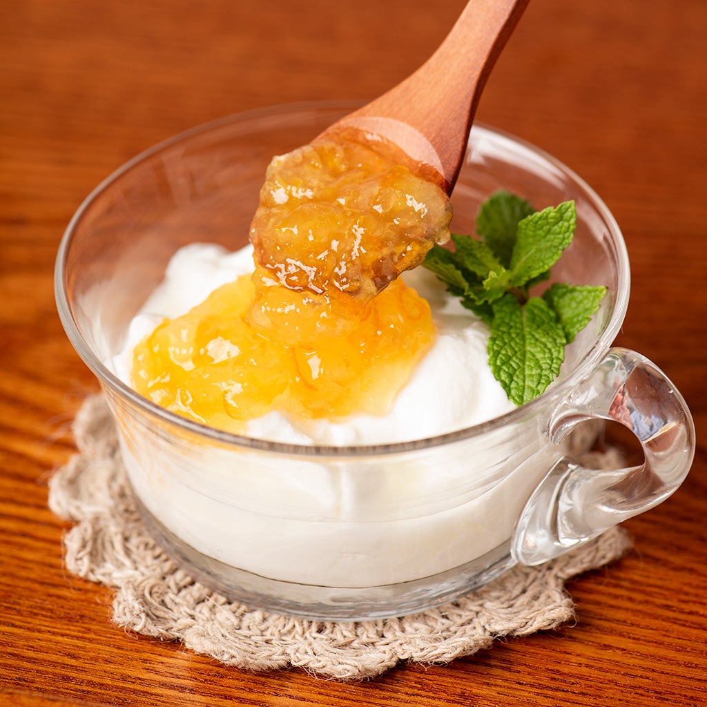 パンはもちろん、ヨーグルトやアイスに添えてもおいしくいただけます。さらに、ドレッシングにひとさじ加えれば、伊予柑の香りがふんわりと広がる爽やかな柑橘ドレッシングに仕上がりますよ。