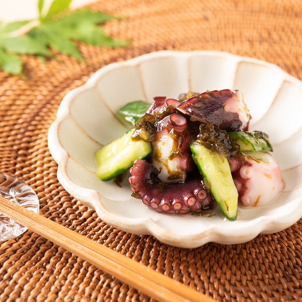 毎朝の納豆に「梅海苔佃煮」を加えるだけで、梅の酸味と海苔の風味がプラスされ、さっぱりとした味わいが楽しめます。きゅうりとタコに「梅海苔佃煮」を和えば、梅の酸味が効いた爽やかなおつまみの完成です!