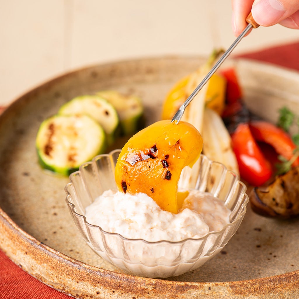 白米との相性はもちろん、冷やし茶漬けやおにぎりの具としてもお使いいただけます。さらに、マヨネーズとヨーグルトと合わせれば、ピリ辛ディップソースの完成。グリルした夏野菜にたっぷりつけてお楽しみください。