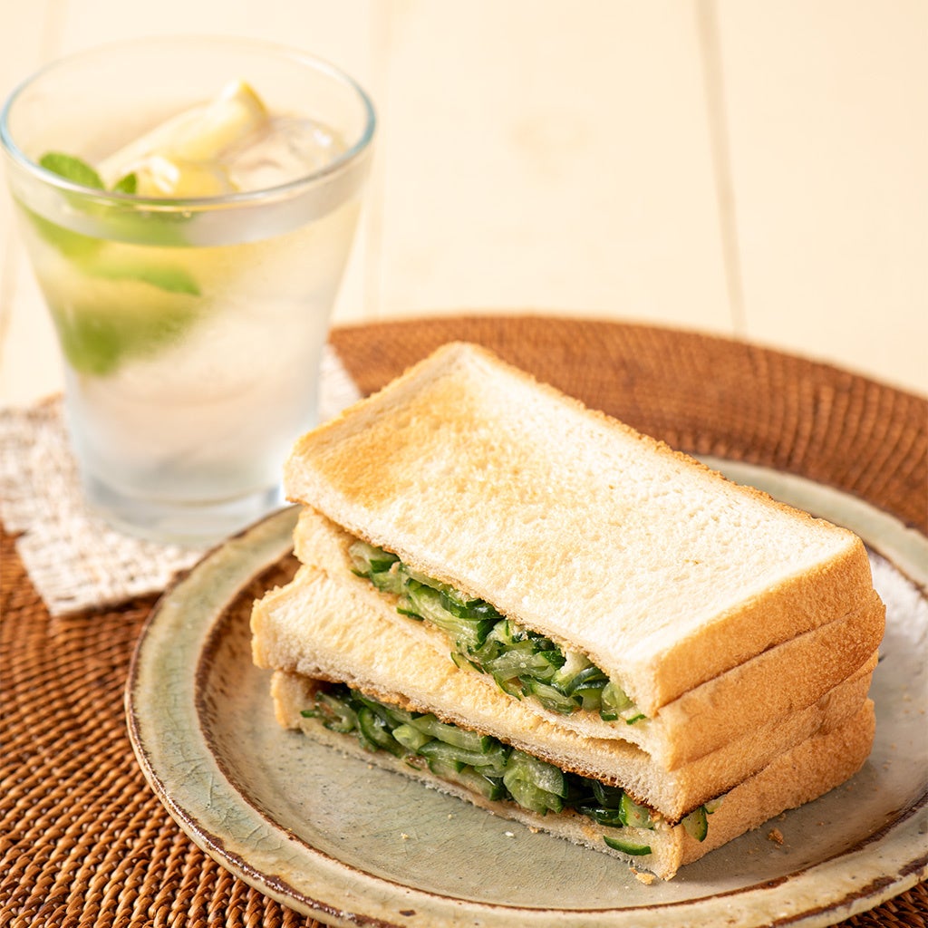 夏のおすすめアレンジは、「きゅうりの和風サンド」。粉末だし、マヨネーズ、からしを刻んだきゅうりと和え、こんがり焼いた食パンに挟めば、だし香るさっぱり爽やかサンドの完成です。