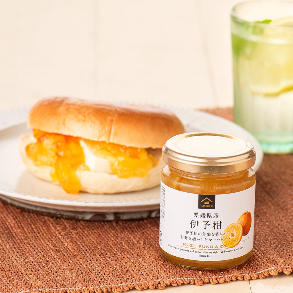 伊予柑の爽やかな香りが広がる、さっぱりとしたマーマレードジャム。果皮のほろ苦さがほんのり効いた、ちょっぴり大人な味わいです。