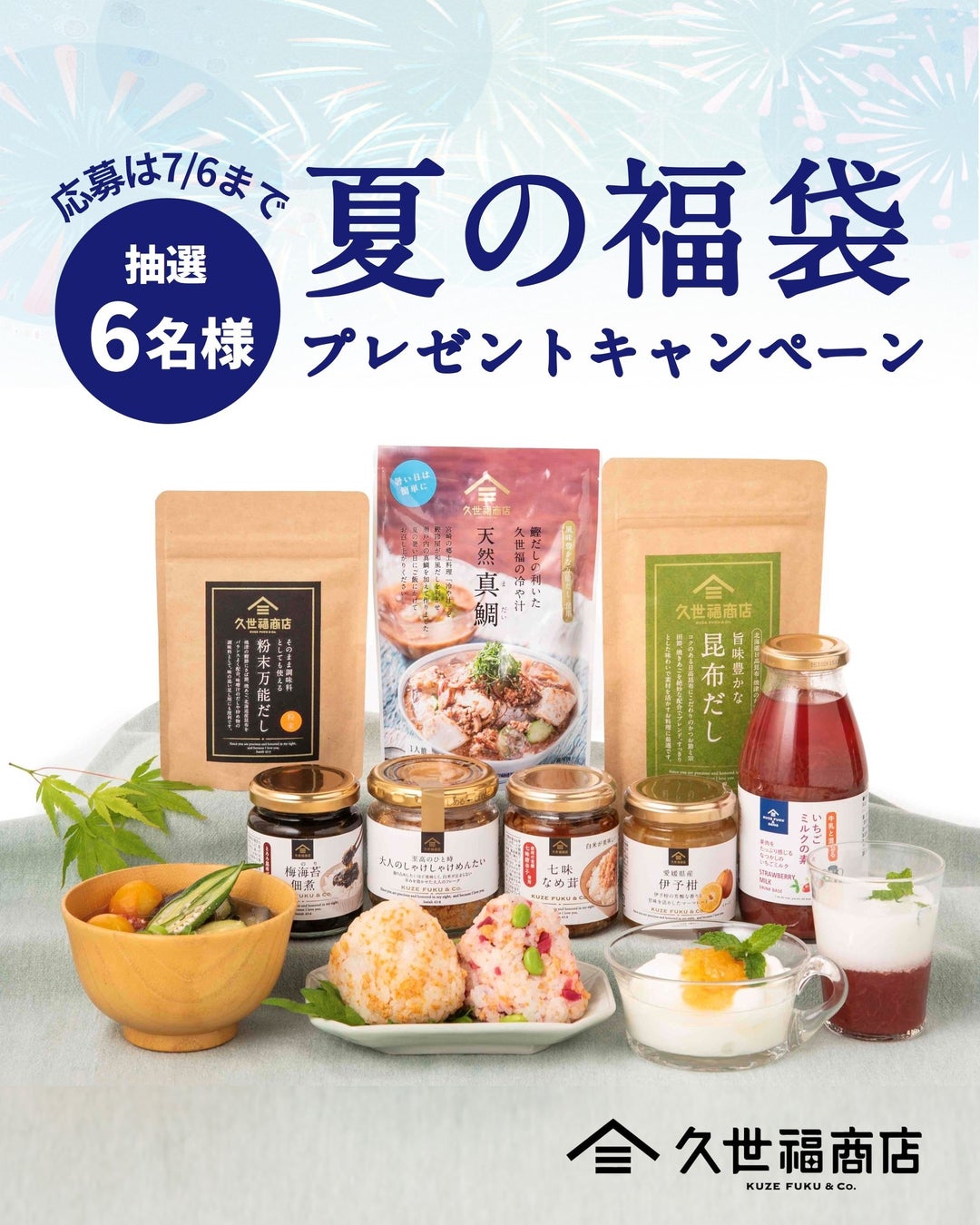 久世福商店公式Instagram・Xでは、「2025 夏の福袋」が合計6名様に当たる、プレゼントキャンペーンを以下の内容で実施いたします!