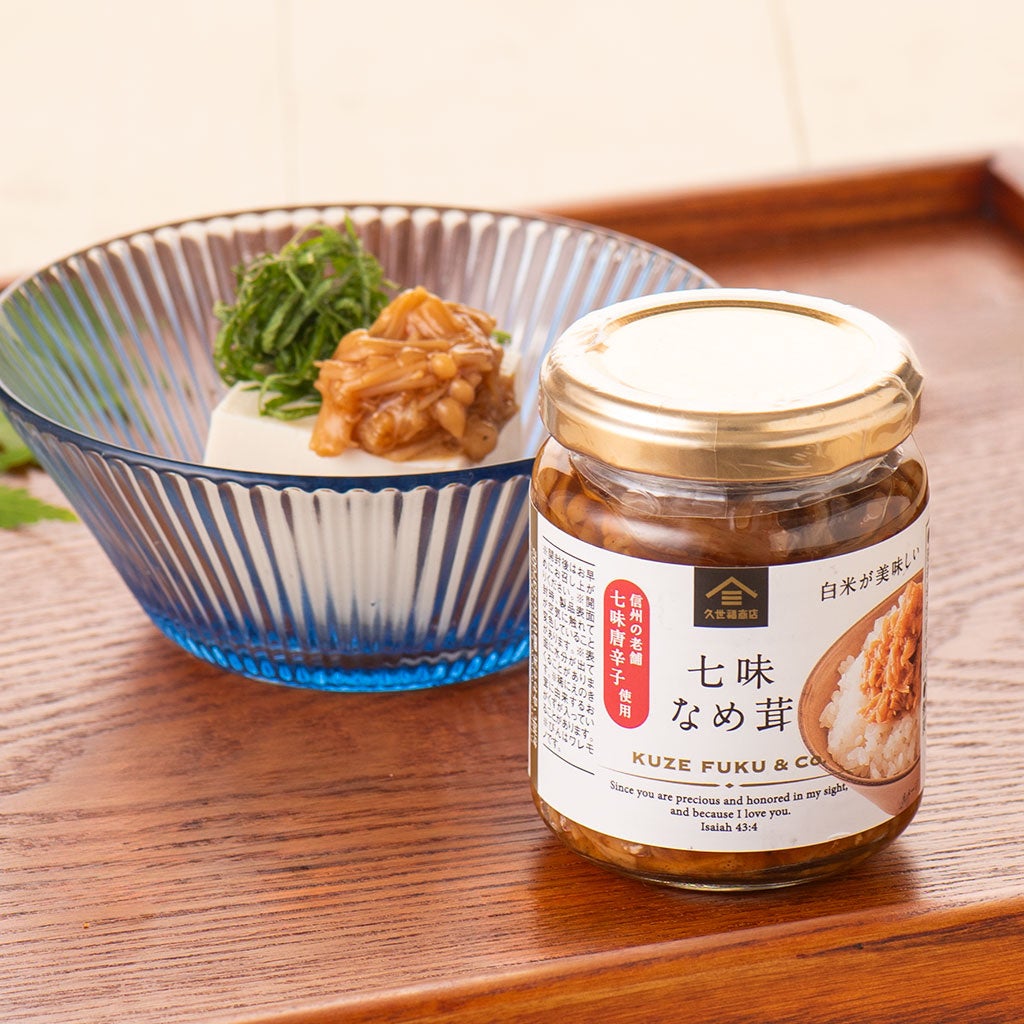 「何杯でも白米が食べられる!」とリピーター続出の人気商品。長野県産えのき茸のシャキシャキ食感と、ピリッと辛い七味唐辛子がアクセントに。ほどよい酸味とピリ辛な美味しさは、食欲が落ちがちな夏でもご飯がどんどん進みます。