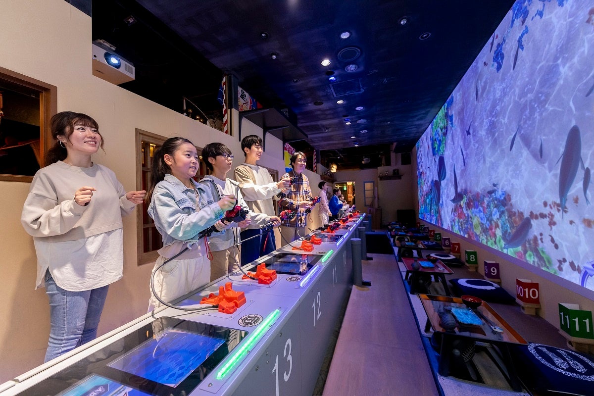 ナンジャタウンの中に海が現れた!超巨大スクリーンで展開する異次元の爆釣りアトラクション。暴れる超巨大魚をどんどん釣り上げて爆釣り王を目指そう!