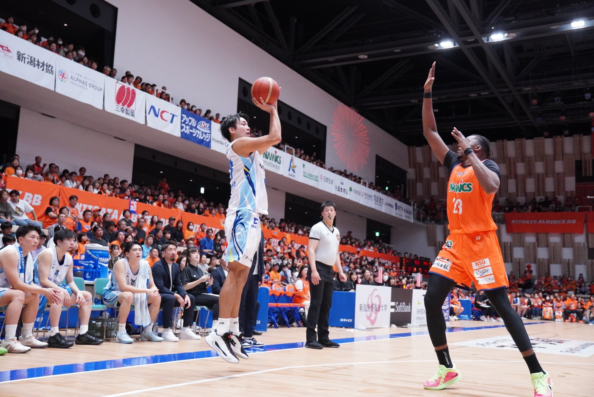 新潟アルビレックスBBさんのホーム開幕戦ということで会場の盛り上がりはすごく、その中でも私たちはそれに負けないぐらいのいつも以上のエナジーを持って戦おうということをテーマに掲げていました。試合の入りからインテンシティ高く自分たちのやりたいテンポでバスケットを進められたかと思います。リードする展開が多かったかと思いますが、その時に10点にできるところを相手にセカンドチャンスを与えてしまったり、自分たちの簡単なターンオーバーもあり、先週からの課題として続いている箇所が出てしまいました。ただ、苦しみながらも勝利できたことは良かったと思います。