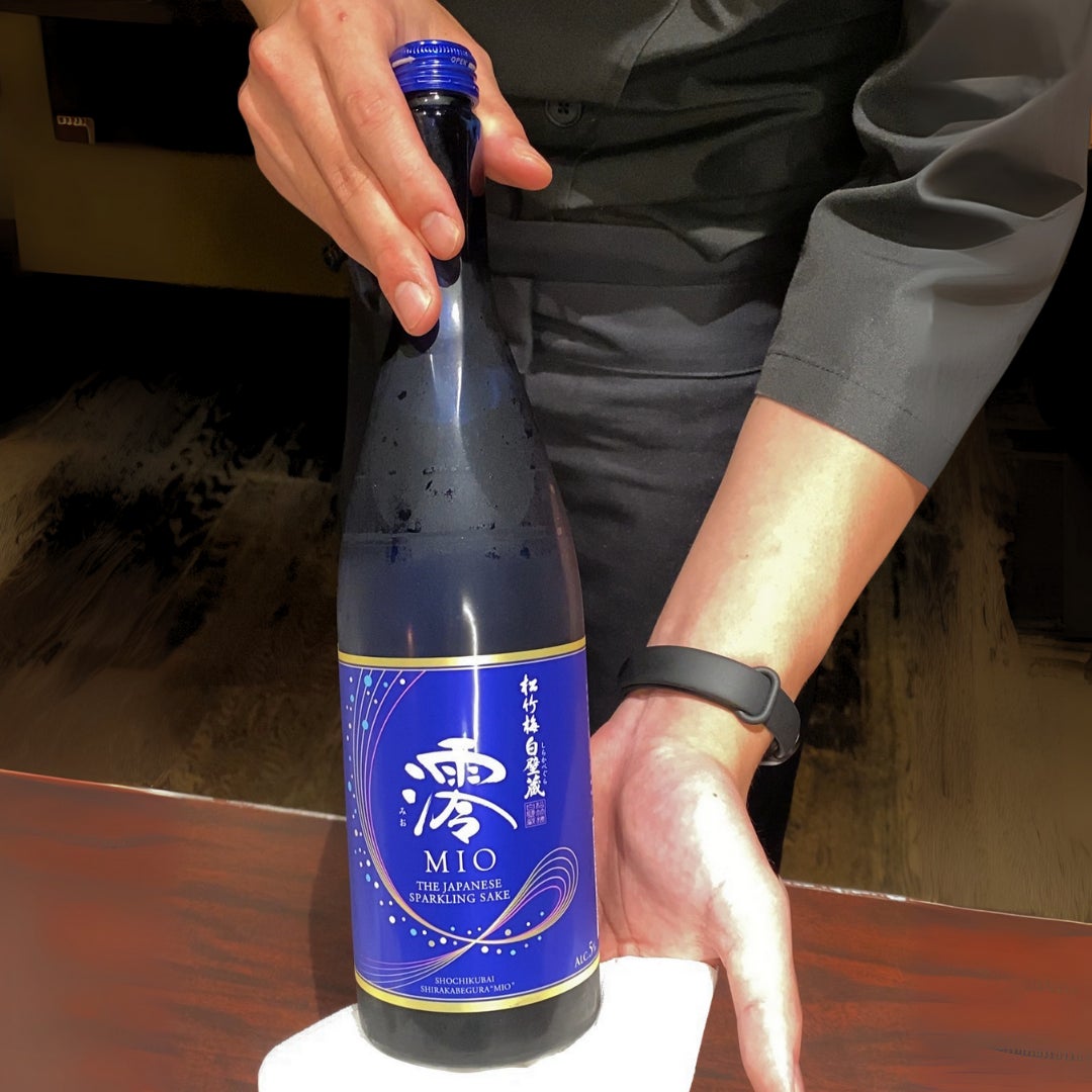 「澪」は、ほんのり甘く、繊細な泡が舌の上で踊るスパークリングタイプの日本酒。アルコール度数も控えめで、食前酒としての華やかさはもちろん、辛味の効いた中華料理をやさしく包み込み、食後のデザートにも寄り添う万能な一杯です。