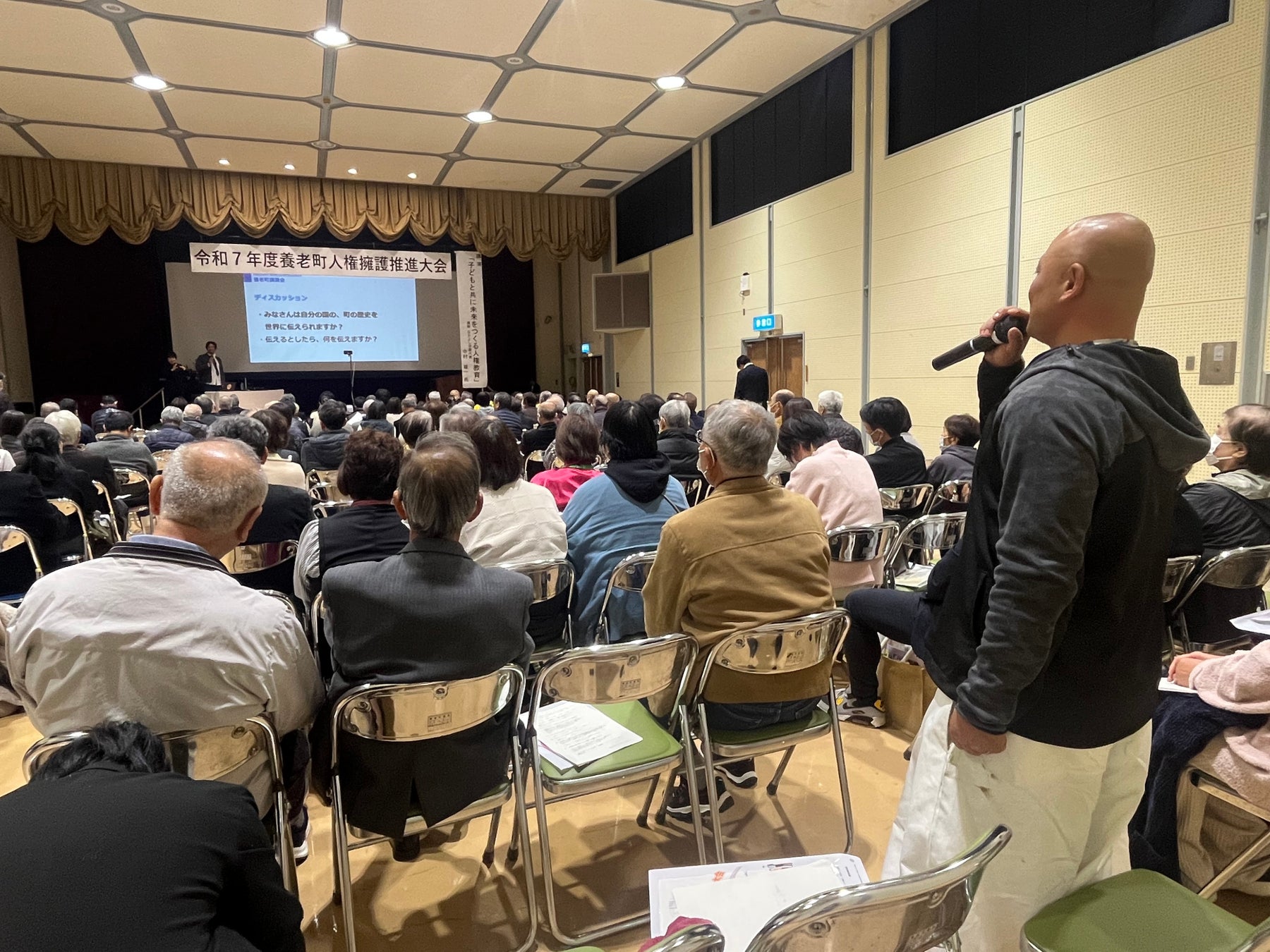 なかよし学園は、流山市での講演に先立ち、12月6日に岐阜県養老町「人権擁護推進大会」で講演「子どもと共に未来をつくる人権教育」を実施。