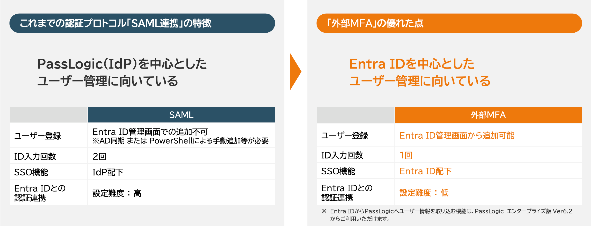 IDの双方でユーザー情報を整合させる必要があり、AD同期やPowerShellによるユーザー追加など、運用が複雑になりがちでした。