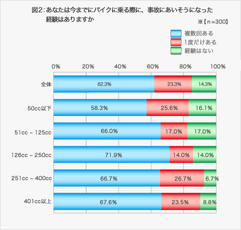 今までバイクに乗っているとき、事故にあいそうになった経験は?(図2)