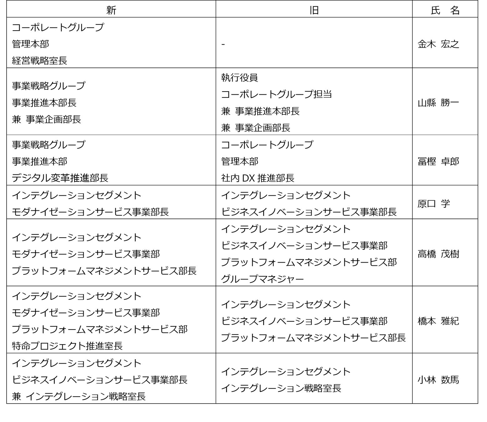 ① モダナイゼーションサービス事業部「九州サービス部」を移管し、ビジネスイノベーションサービス事業部「九州サービス部」とする。