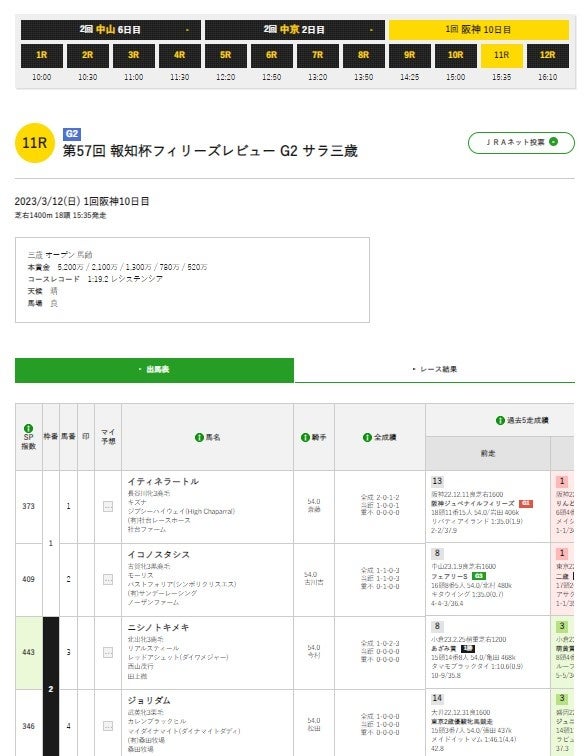 - 中央競馬 開催全レースの出走表・成績を掲載