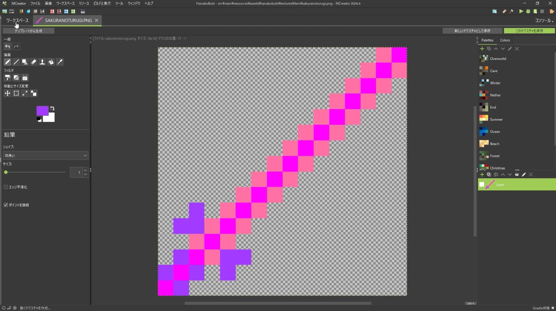 2Dデザイン:作りたいアイテムを考え、ドット絵で作成。
