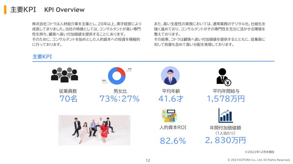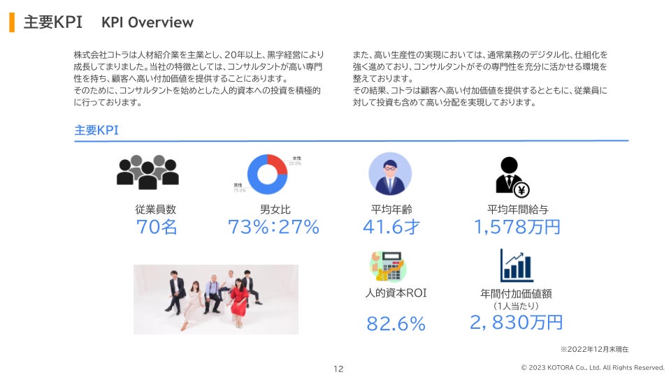 株式会社コトラ(本社 東京都港区、代表取締役 大西利佳子)は、「ISO30414」に準拠した人的資本開示として「People Fact Book 2022」を当社ホームページにて、2023年2月28日(火)に公開いたしました。