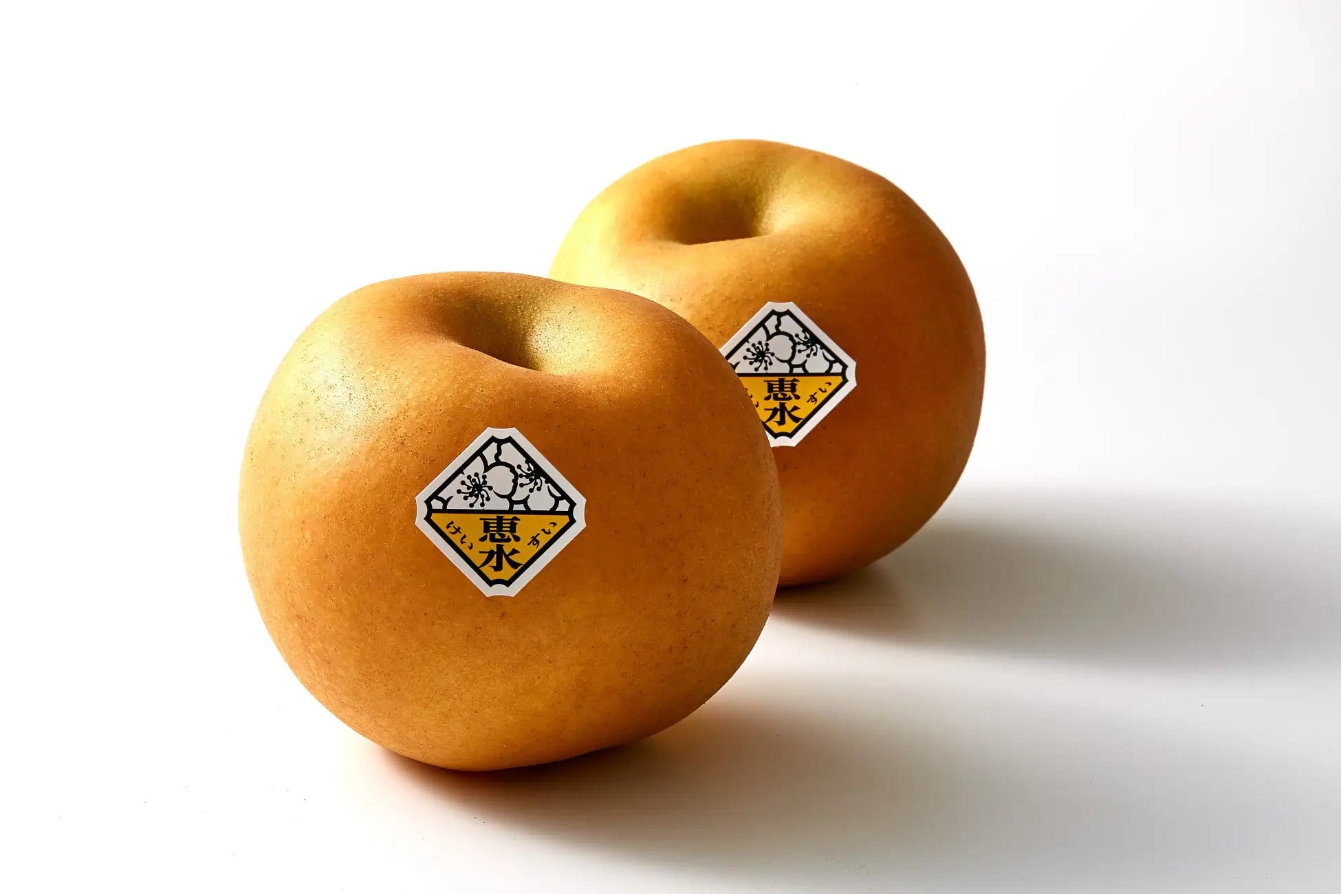 茨城県オリジナル品種の梨「恵水」は、茨城県農業総合センターの研究者や技術者がその技術力を結集し、品種開発に取り組んで17年、「新雪」と「筑水」という品種をかけあわせて、約4,300個体の中から選りすぐり、誕生しました。以来、高品質な果実を作るために生産者と一体になって栽培試験を繰り返し、平成23年(2011年)に品種登録されました。平成25年(2013年)から県内で栽培が開始されて以降、年々栽培面積が増えており、おいしい果実がみなさんに届くようにと、大切に育てられています。