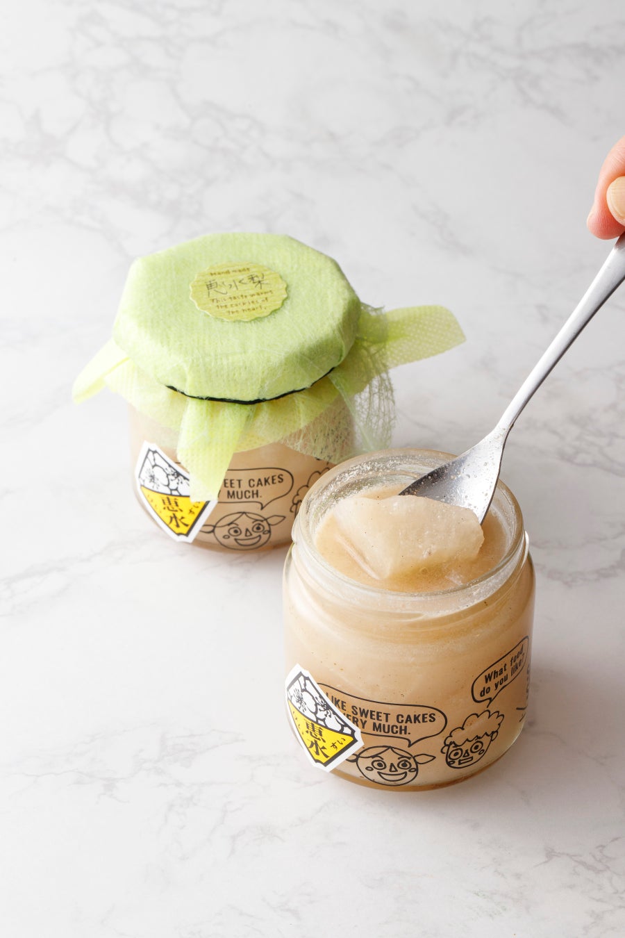 恵水のシャリっとした食感を残しながら、香りと旨みを閉じ込め、バニラクリームとレモンをアクセントにしたコンポートで南仏のスイーツをイメージしました。ウォッカやブランデー、ジン、ラムなどのお酒、ソーダ割とも相性抜群です。