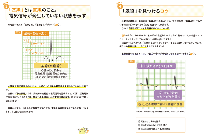心電図の学習にハードルを感じている看護師に向けて、第1部は「心電図がニガテでこわい人が最初に読むページ」とし、心電図の仕組みを徹底的かつ丁寧に解説。第2部以降で実際の読解に入ります。