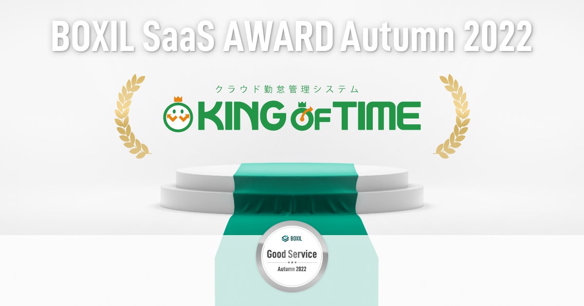 勤怠管理システム「KING OF TIME」が「BOXIL SaaS AWARD Autumn 2022」にて「Good Service」 を受賞