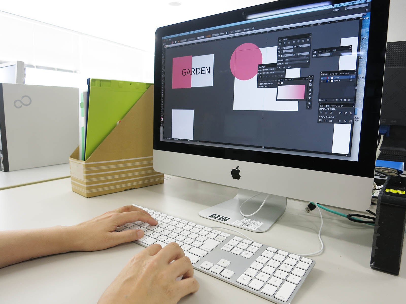 前半ではデザインや印刷の基礎、Adobeの「Illustrator」や「Photoshop」の基本的な操作を習得し、簡単なデザインを実践します。後半では文章の書き方や写真やイラストの処理の仕方、レイアウトの基本など応用的な技法を学び、名刺やチラシのデザインを制作します。