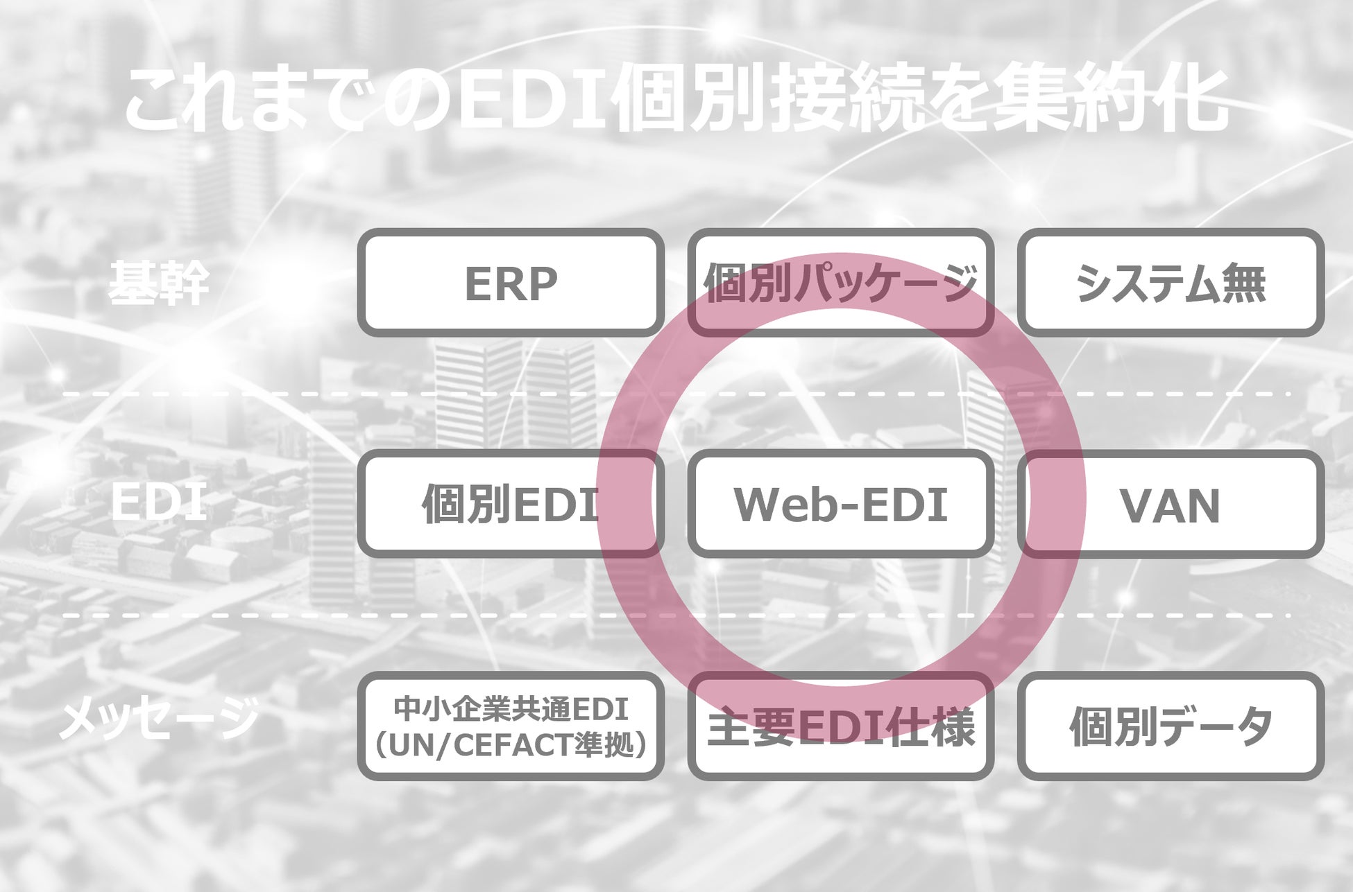 中小企業共通EDIに準拠し、各社ERPの個別アドオン工数を削減可能です。