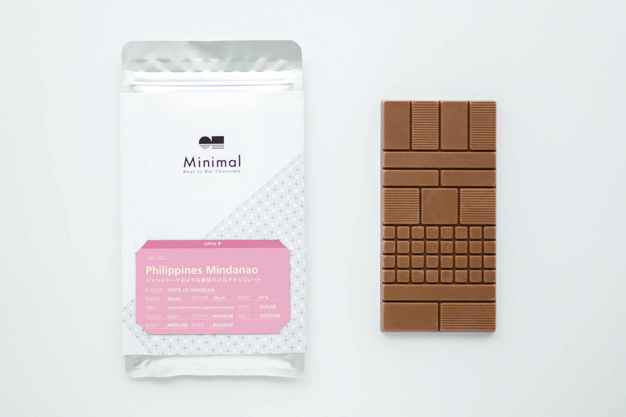 - Minimal通常板チョコレートとしては初のミルクチョコレート。「ミルクチョコレート - フィリピン -」はジャンドゥーヤのような味わい