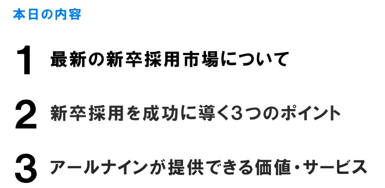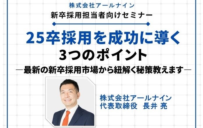 この度、これまで2千社以上の経営者・採用担当者の相談に乗った当社代表・長井亮による、2025年度卒業予定の学生の新卒採用のコツをまとめたWebセミナー「【25卒新卒採用】最新の新卒採用市場から紐解く、成功に導く3つのポイント」を開催しました。参加者からは「自社の手を付けるべきポイントがわかった」「よく聞く話と違い、大変勉強になった」など好評をいただきました。当日のレポートをお届けします。