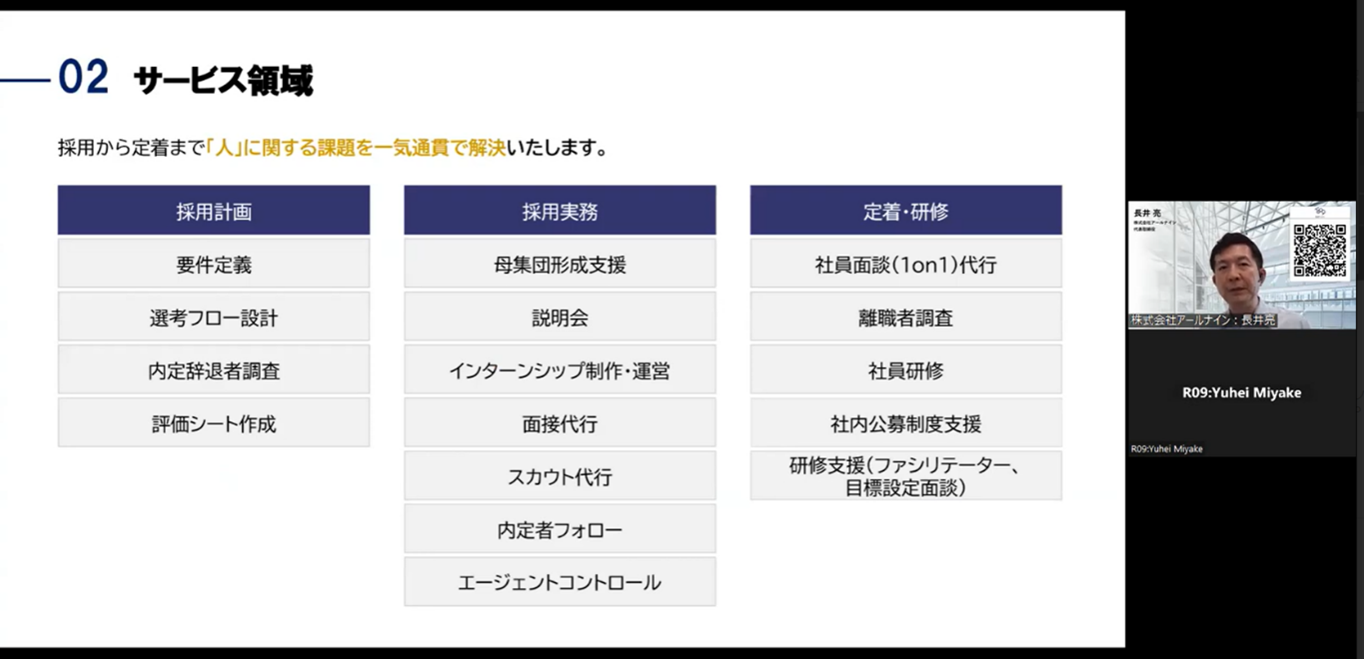 事業内容:採用コンサルティング、採用実務アウトソーシング、社外面談代行、教育研修