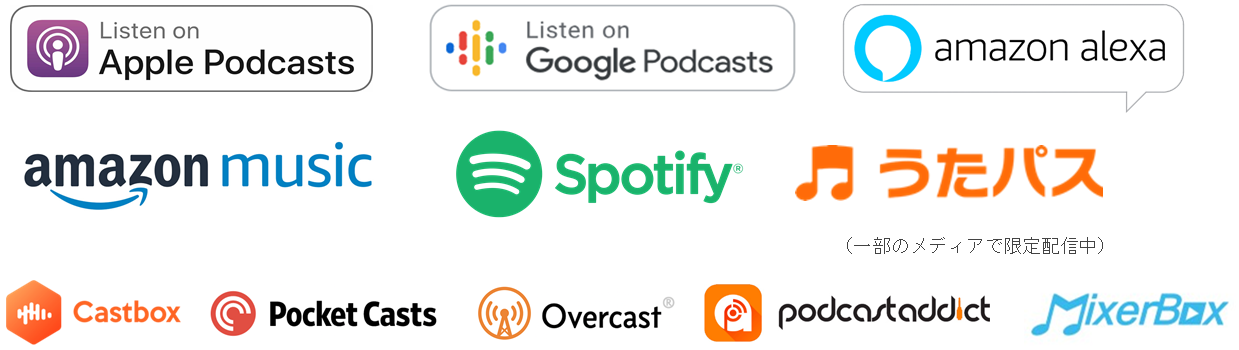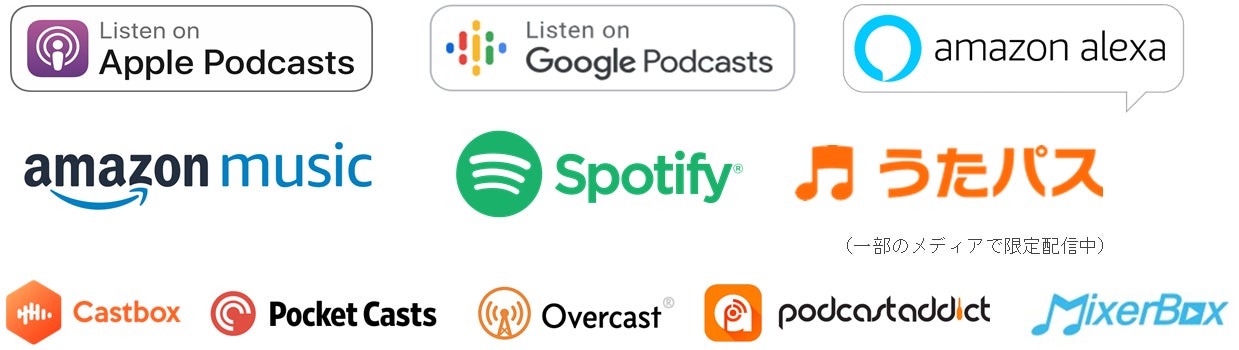 - 音声番組化したものを、各音声プラットフォームへ自動配信します。対応のプラットフォームは現在以下となります。