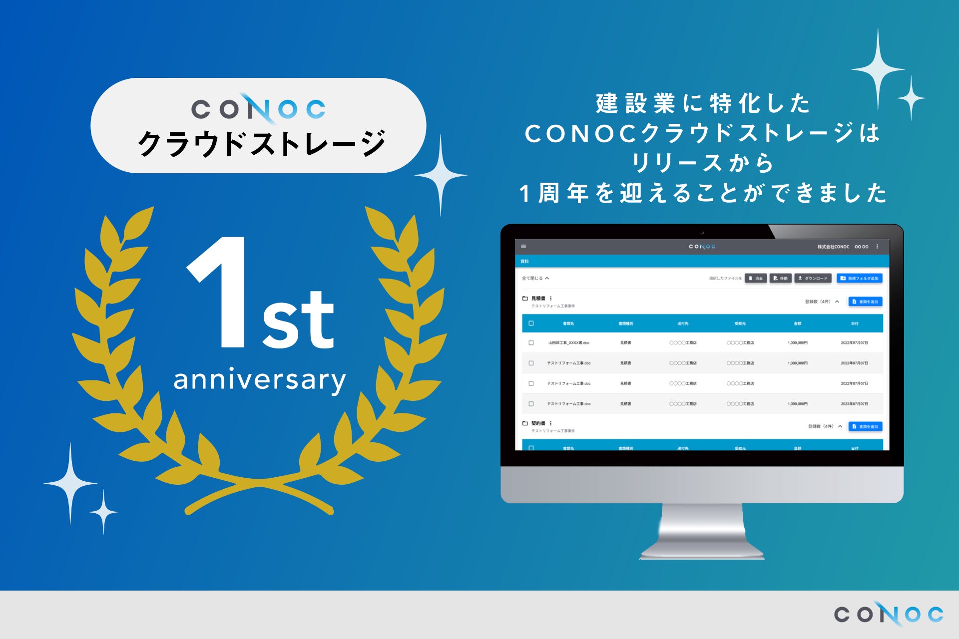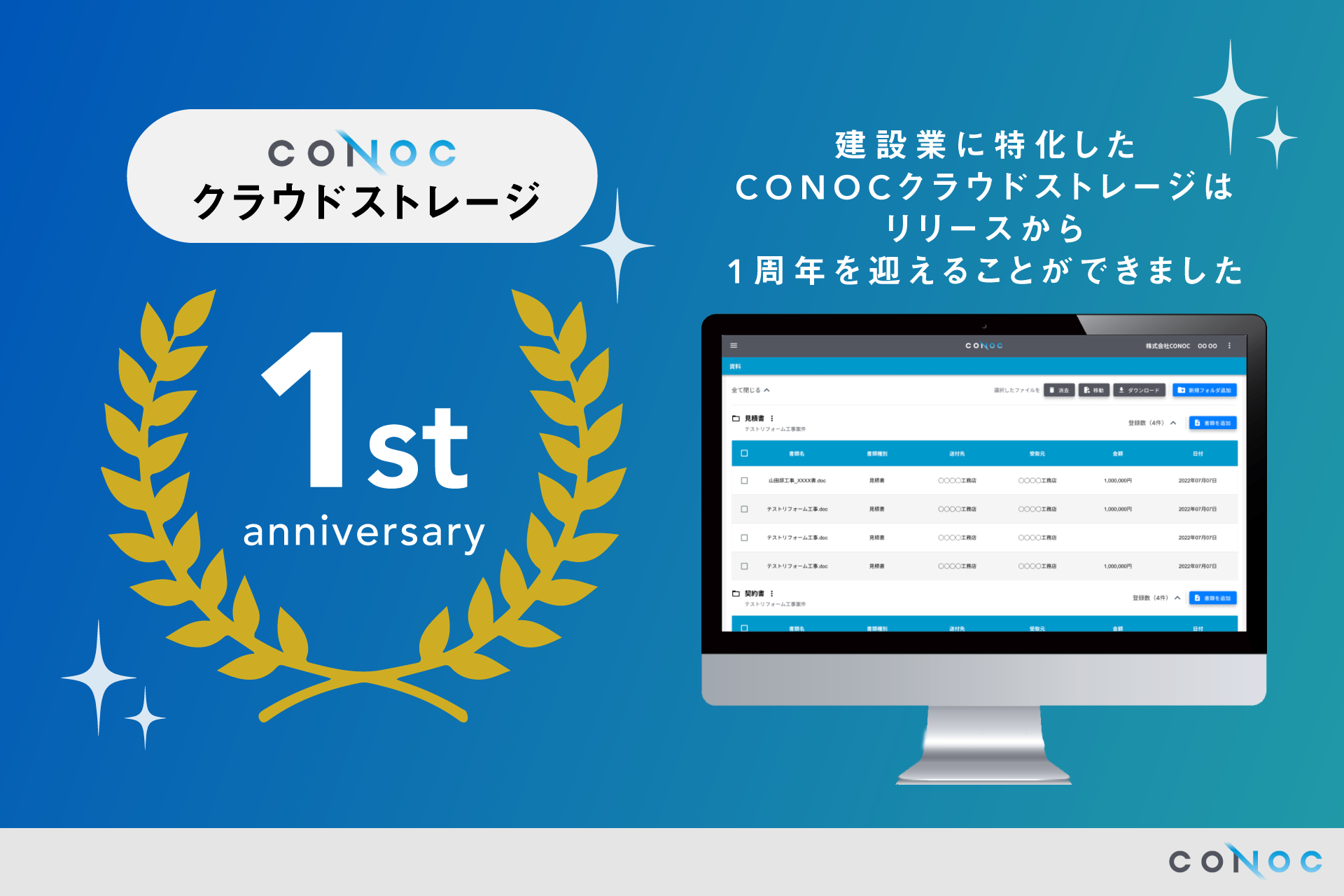 CONOC、書類や写真を管理・共有できる建設業特化型のCONOCクラウドストレージがサービス開始1周年