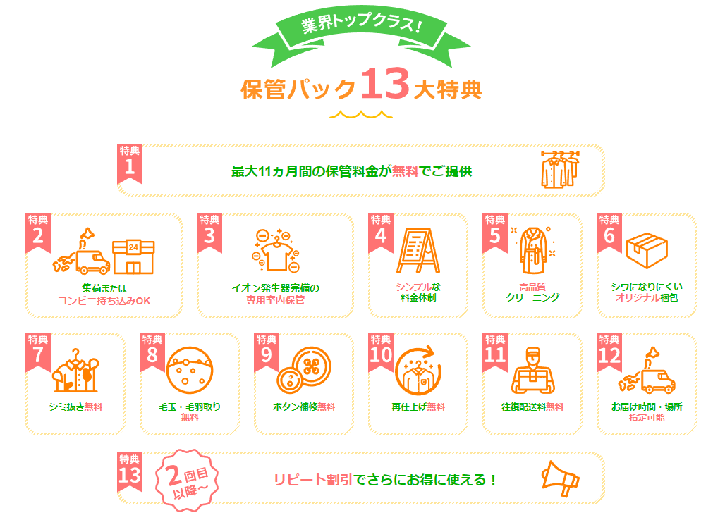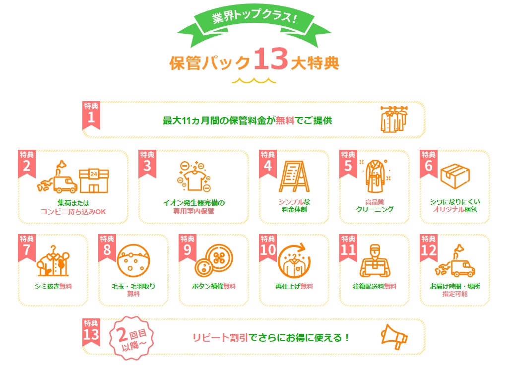 こちらのサービスは、夏物保管パックのみとなりますので、季節の変わり目のこの時期に、ご利用ください。