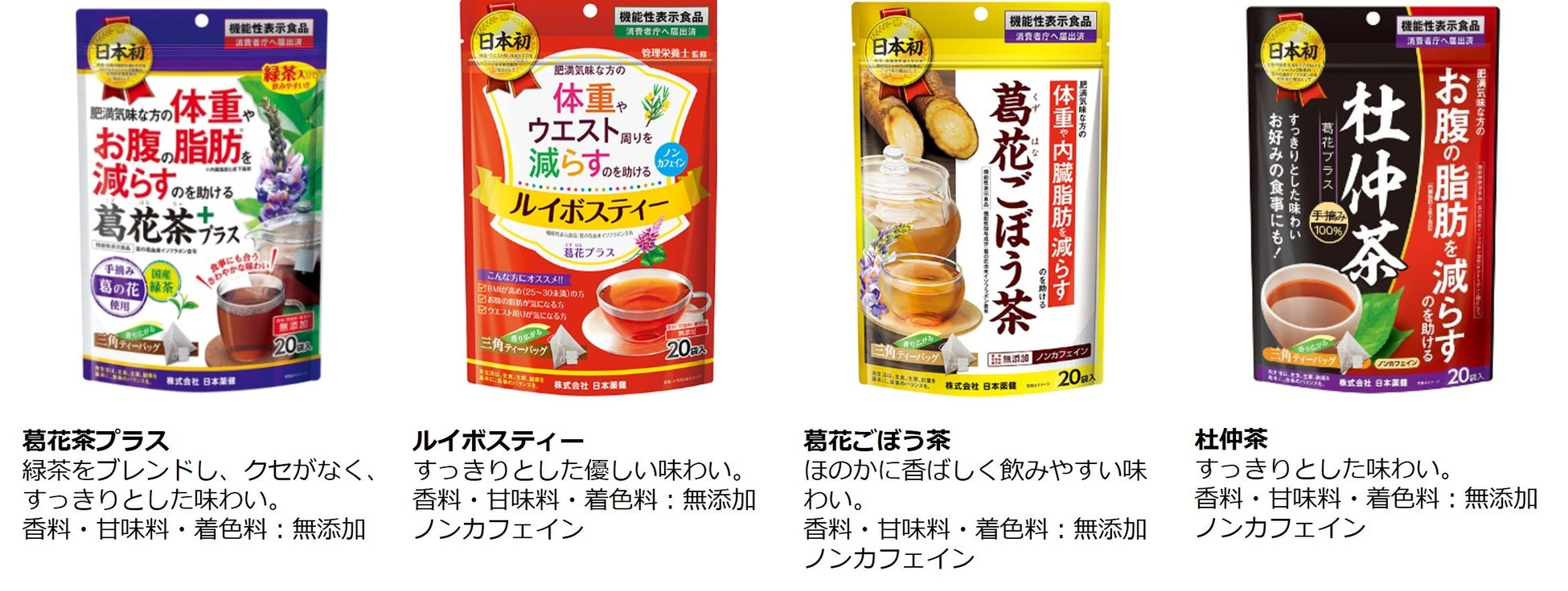 4つの味から選べる「肥満気味な方の体重やお腹の脂肪を減らすのを助ける」機能をもつ健康茶