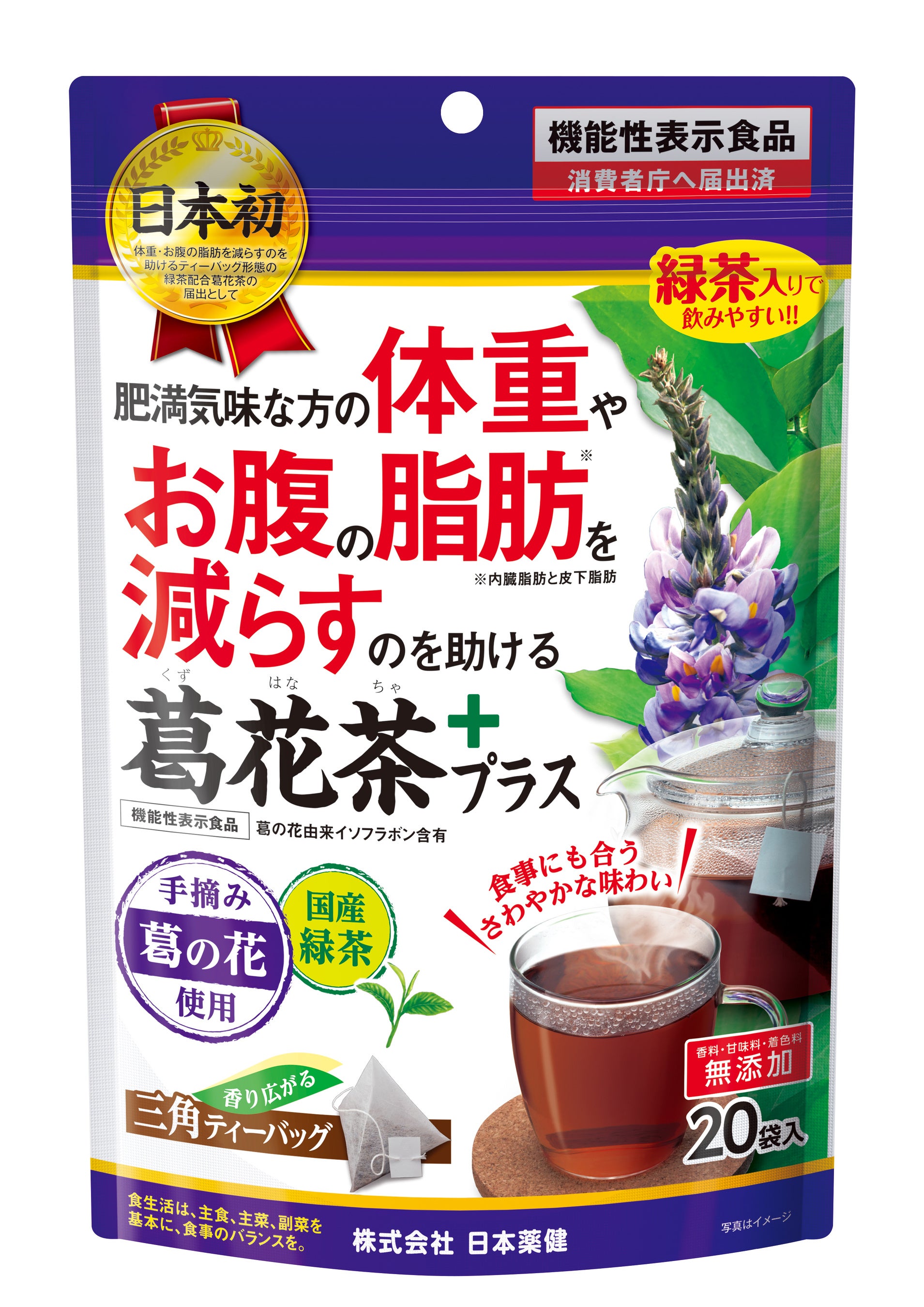 ・届出表示:本品には、葛󠄀の花由来イソフラボン(テクトリゲニン類として)が含まれます。葛󠄀の花由来イソフラボン(テクトリゲニン類として)には、肥満気味な方の、体重やお腹の脂肪(内臓脂肪と皮下脂肪)やウエスト周囲径を減らすのを助ける機能があることが報告されています。肥満気味な方、BMIが高めの方、肥満気味でお腹の脂肪やウエスト周囲径が気になる方に適した食品です。