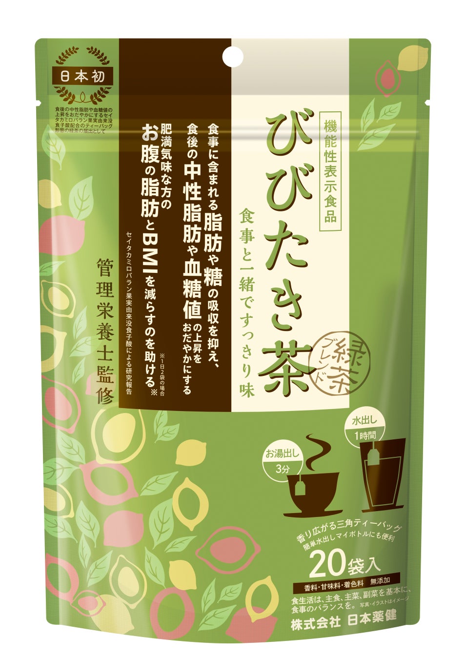 株式会社日本薬健(本社:東京都港区新橋二丁目20番15号、代表取締役:丸山 忠生)は、機能性表示食品の“選べる健康茶シリーズ”より「びびたき茶 緑茶ブレンド」「ふらばん茶 緑茶ブレンド」を2024年3月28日(木)より全国のドラッグストアにて発売いたします。