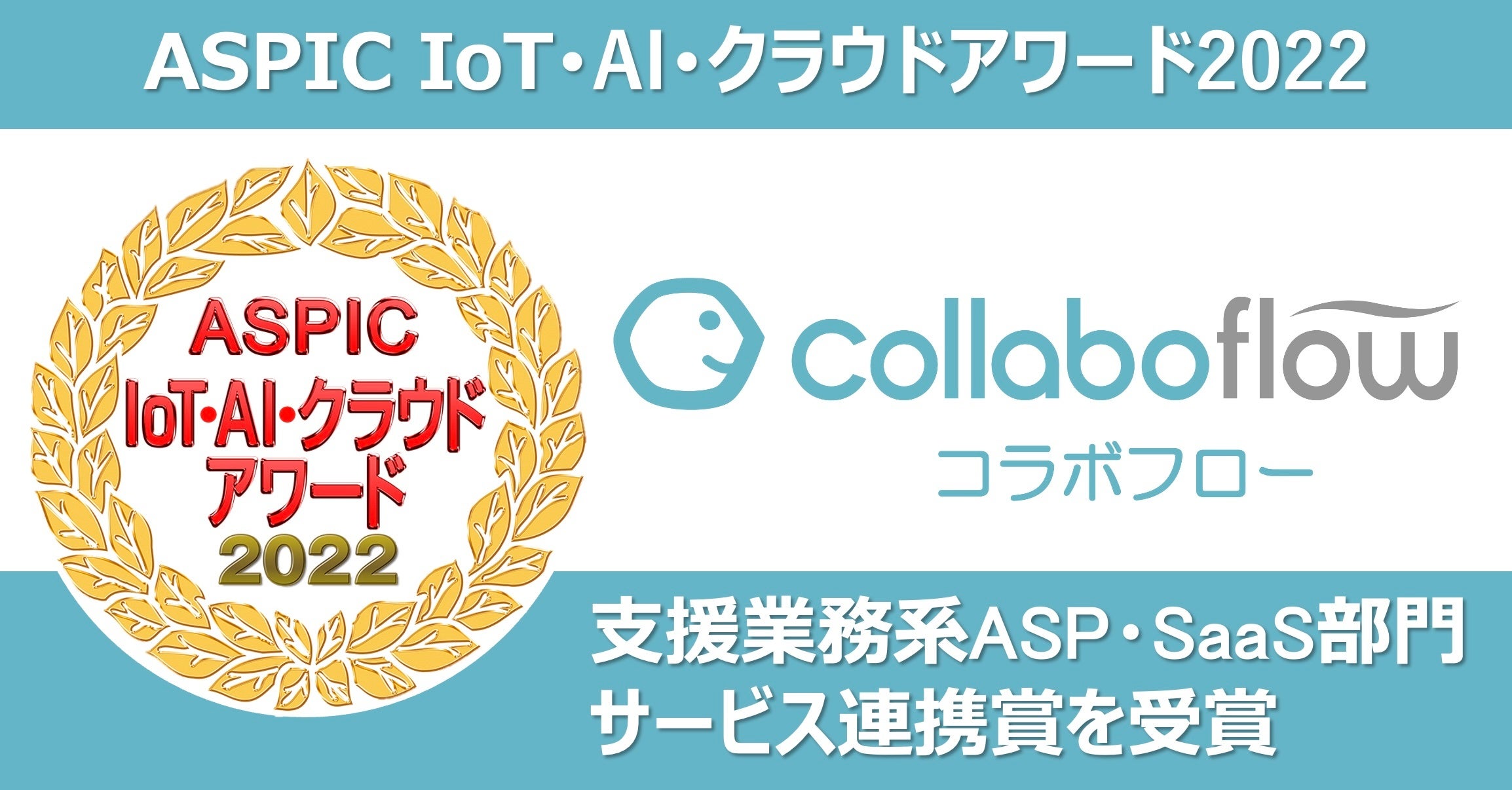コラボフローが総務省後援の「ASPIC IoT・AI・クラウドアワード2022」にて、支援業務系ASP・SaaS部門『サービス連携賞』を受賞