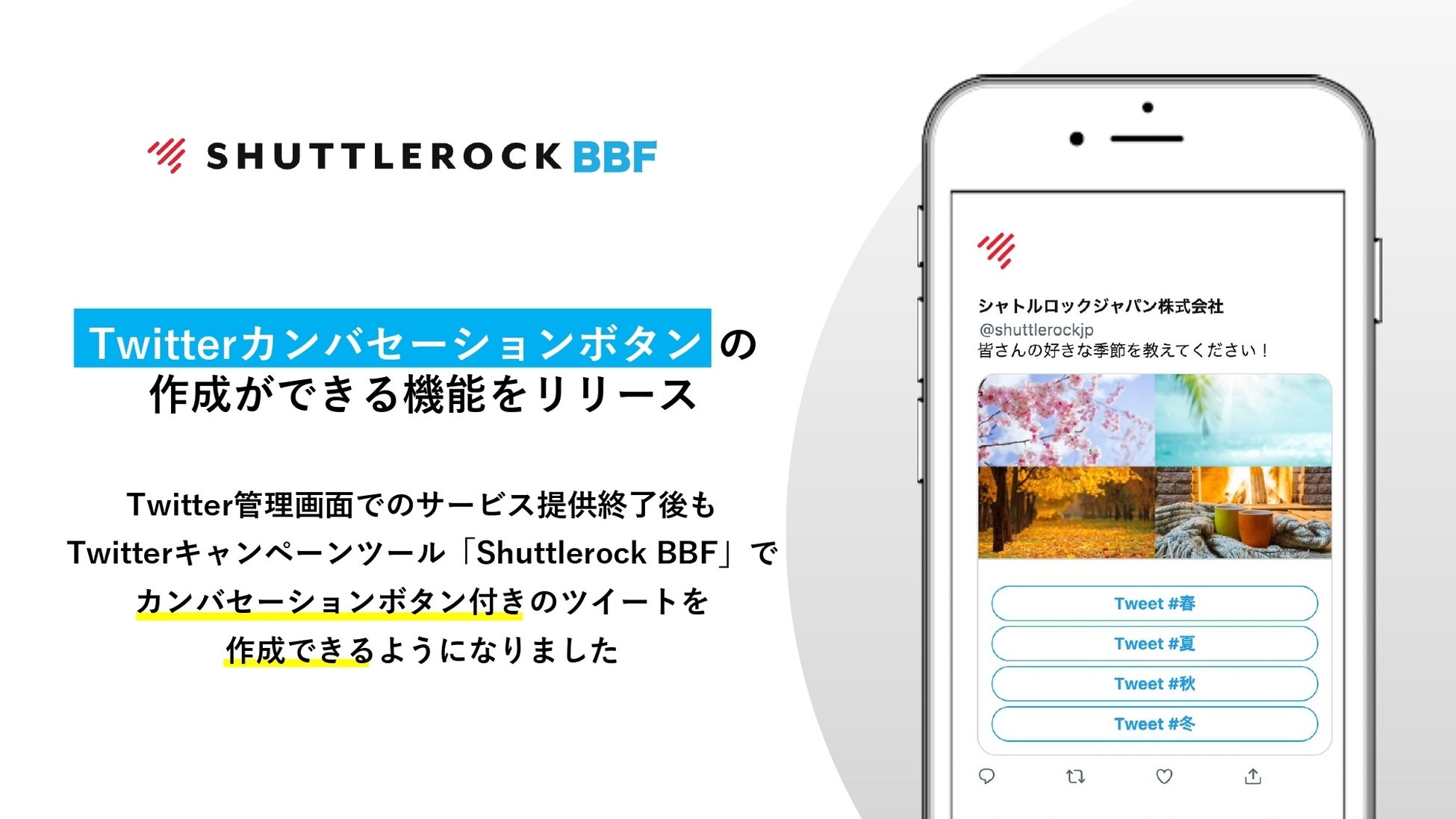 シャトルロックジャパン株式会社(本社:東京都新宿区、代表取締役:金光展意、以下、シャトルロックジャパン)は、シャトルロックジャパンが運営するTwitterインスタントウィンツール「Shuttlerock BBF」にて、カンバセーションボタン付きツイートの作成機能をリリースしたことをお知らせいたします。