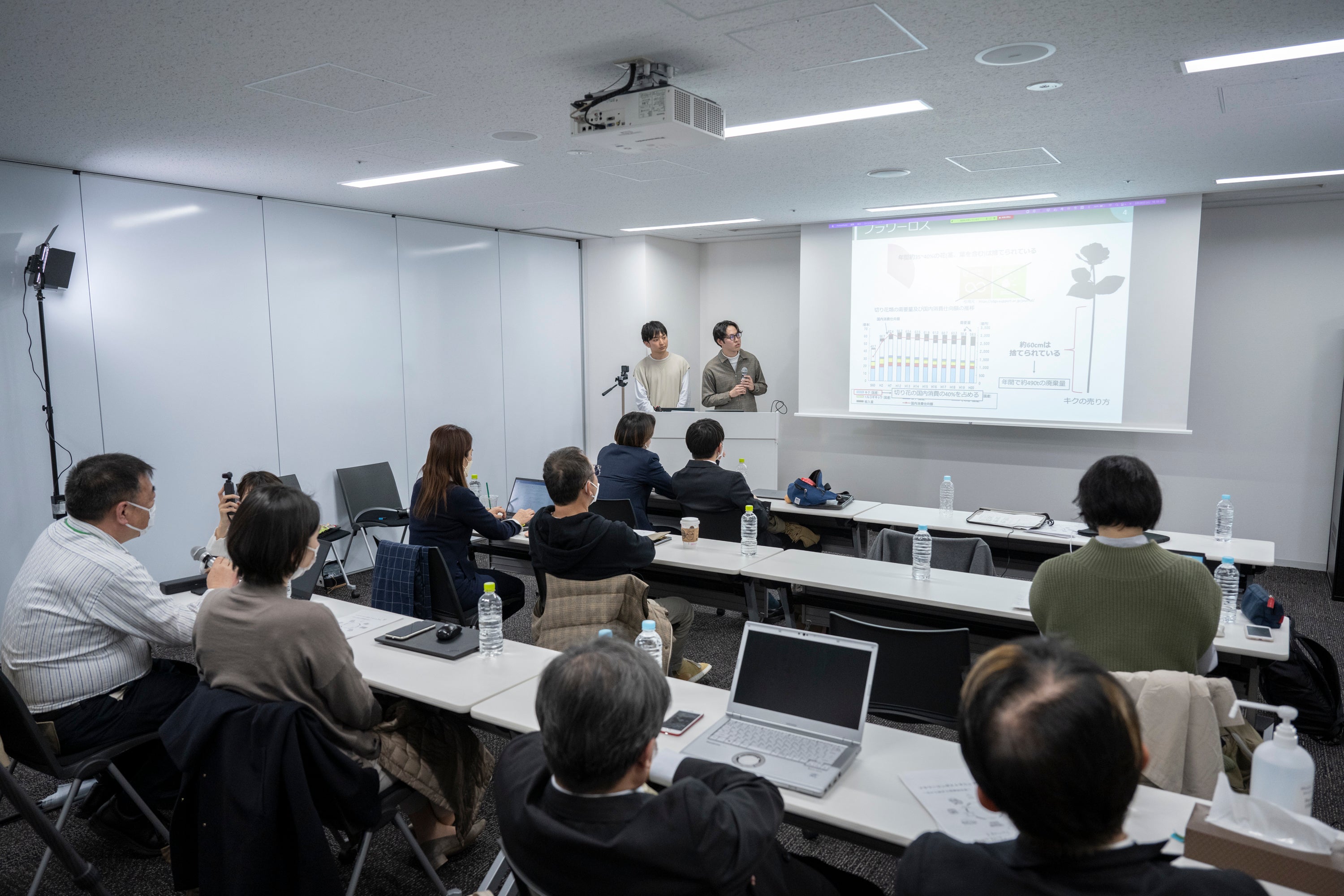 プロジェクトが発足して約1年、発案した学生による詳細の調査・研究のほか、花キューピット関係者と学生で各チーム6回のディスカッションを重ね、最終研究成果発表会を2022年3月29日に早稲田大学リサーチイノベーションセンター(東京都新宿区)にて開催しました。