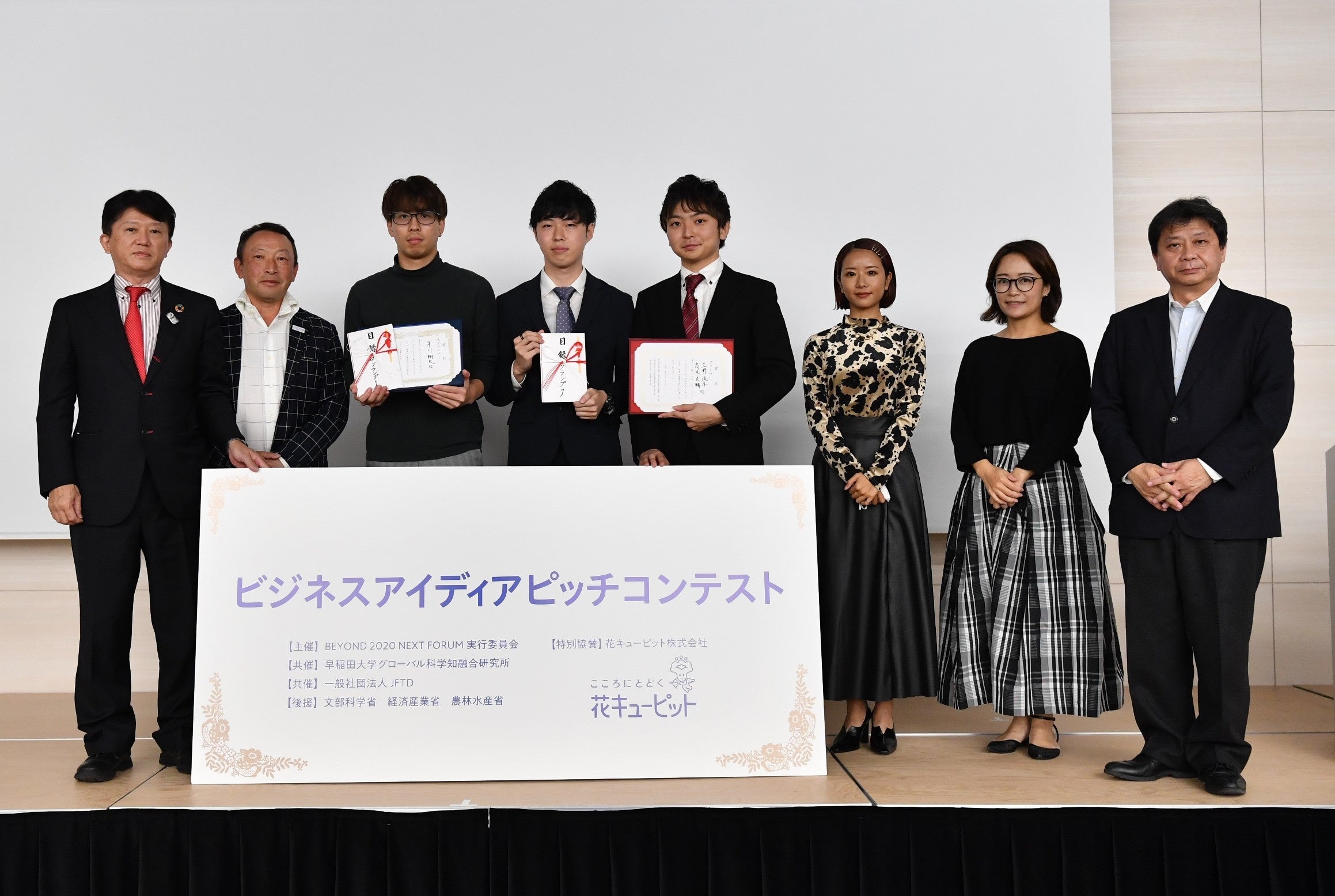 本プロジェクトは、2020年度にJFTD花キューピットが、BEYOND 2020 NEXT FORUM実行委員会および早稲田大学グローバル科学知融合研究所と共催した「ビジネスアイディアピッチコンテスト」(後援:文部科学省・経済産業省・農林水産省、特別協賛:花キューピット株式会社)がきっかけで発足したものです。