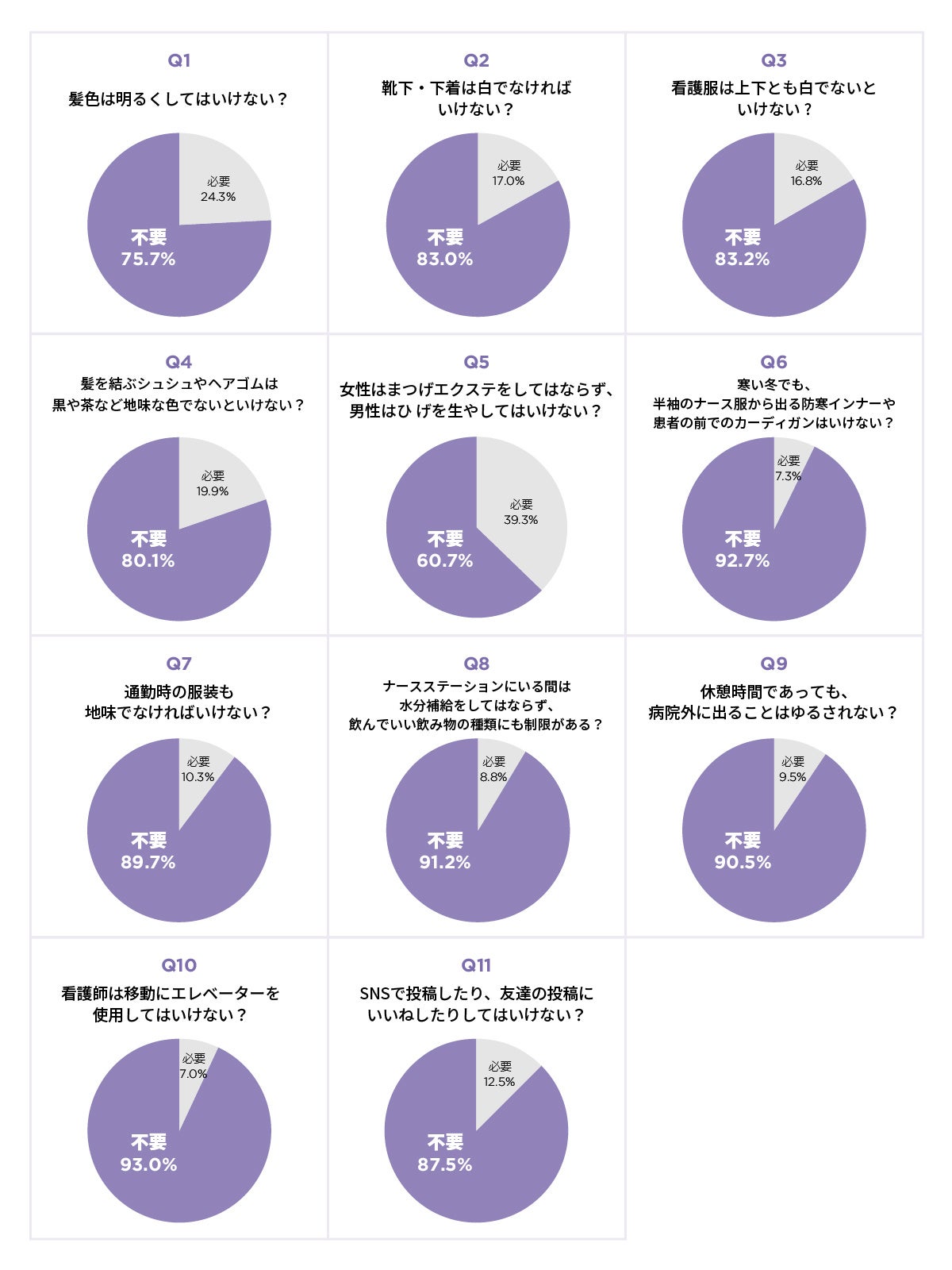 病院に対してナース服導入を提案する際も、看護師全員の意見を確認する病院と、現場が忙しいからこそ病院幹部が勝手に決めてしまう病院と、風通しが病院によって様々であることを以前から実感していました。また、院長が代わった途端に「ナース服は上下白でなくてはいけない」というルールが撤廃された病院もあり、固執しているルールも本当に必要ではないものもあるのでは?と感じる瞬間があったことが調査のきっかけです。