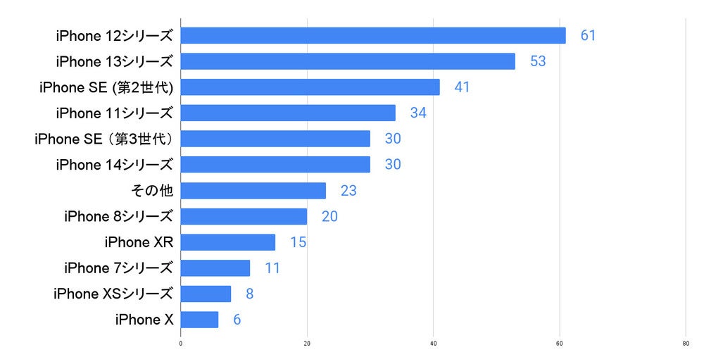 iPhoneを使用している方に、どのiPhoneシリーズを使用しているのかを調査したところ、「iPhone 13シリーズ」や「iPhone 12シリーズ」を使用している方が多いことがわかりました。