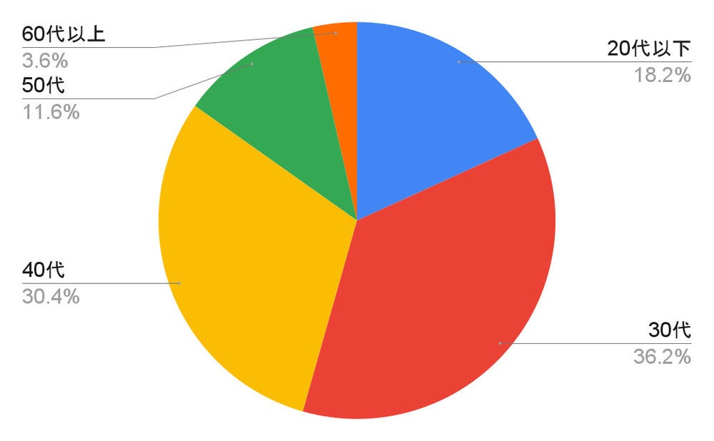 今回の調査では、30代や40代の方に特に多く回答していただきました。