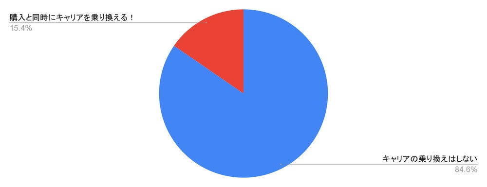 新型iPhone 15の購入と同時にキャリアの乗り換えをすると考えている方は少数派のようです。