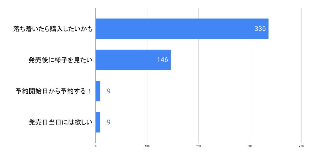対して、ほとんどの方が発売後に購入を検討しているようです。